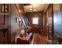 For more info on this property, please click the Brochure button below. This stunning two-storey Century home is conveniently located close to downtown Strathroy as well as being within walking distance to Alexander Park and the Rotary walking trail. This house offers a number of options for the discerning buyer-owner occupancy, as a great potential investment, for first time buyers looking for a additional support, or could easily be a single family dwelling. The main level is comprised of an inviting front foyer, large living room with high ceilings and a cozy gas fireplace and a separate dining room. Also on the main level is a galley-style kitchen, a four piece bathroom, a good size bedroom with closet and a sunroom overlooking the tranquil backyard. The upper level offers income potential with its separate entrance, kitchen and three-piece bathroom. The upper level also has three bedrooms including a large principal bedroom suitable for a living room area. Additionally there is a sunroom with balcony on the upper level. Outside is a welcoming covered front porch and private backyard with deck. The property includes a detached two vehicle garage/workshop, a sand point and irrigation system. Noteworthy is a new metal roof installed in 2024. This is a special home with thoughtful period details such as original hardwood floors, wide baseboards, beautiful wood trim, solid wood doors and a stained glass window. One of a kind, do not miss out! (id:25988)